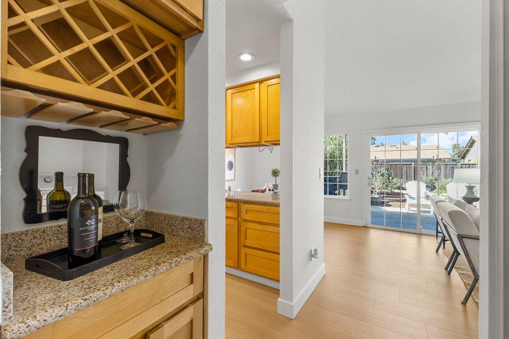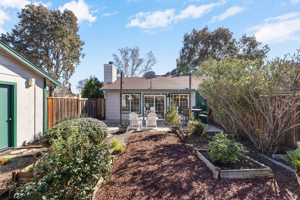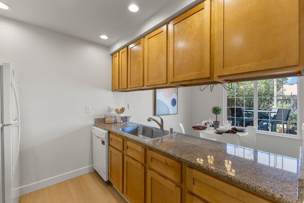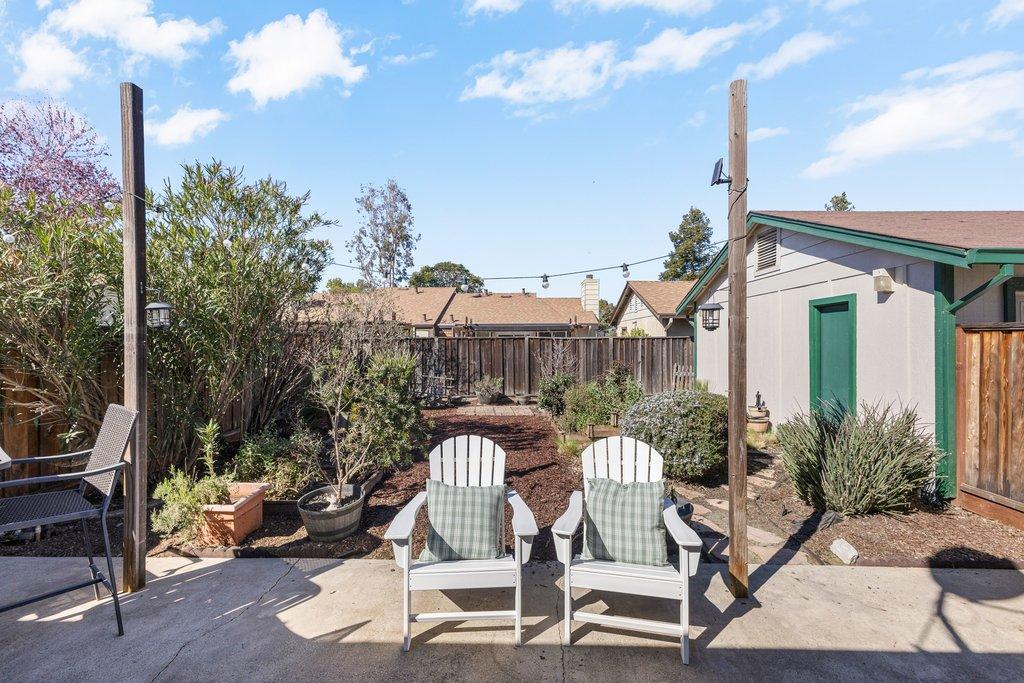 The spacious yard is perfect for relaxing evenings, weekend gatherings, and enjoying Livermore’s sunny weather. Inside, the kitchen features granite countertops, ample storage, and a functional layout. Soaring ceilings, natural light, and a cozy fireplace create an open, welcoming living area. The primary bedroom connects directly to the bathroom for an ensuite-style feel, and both bedrooms include shutters for privacy.