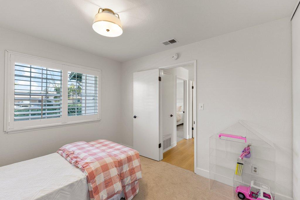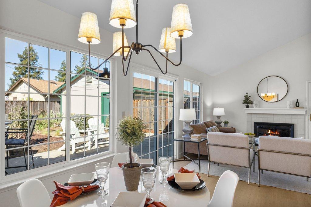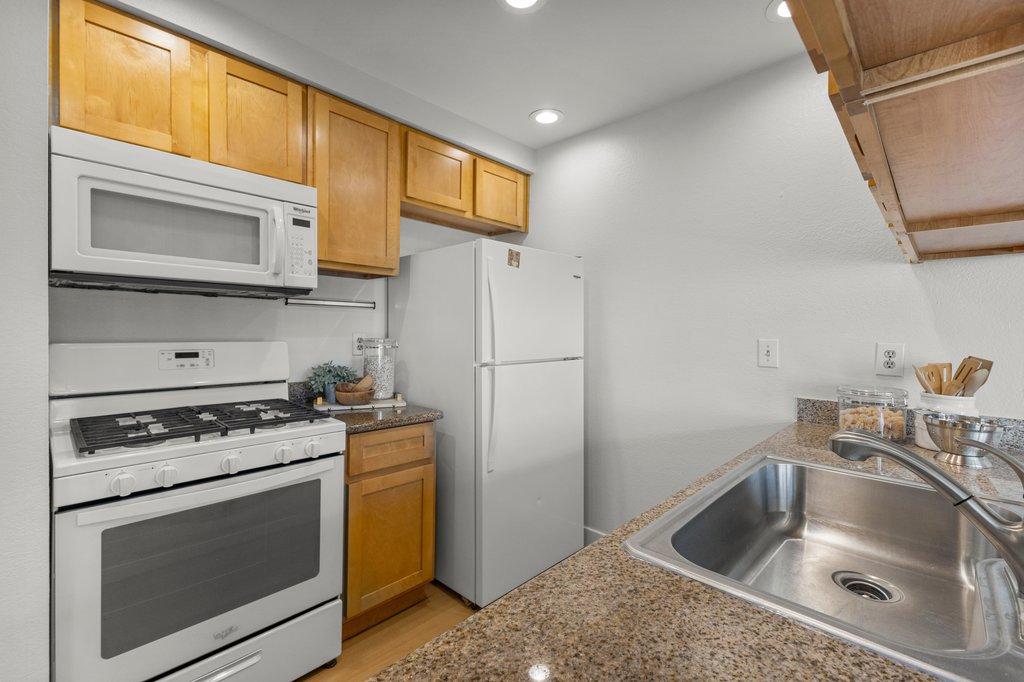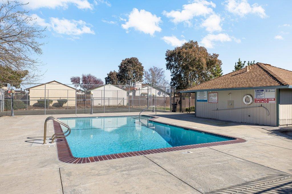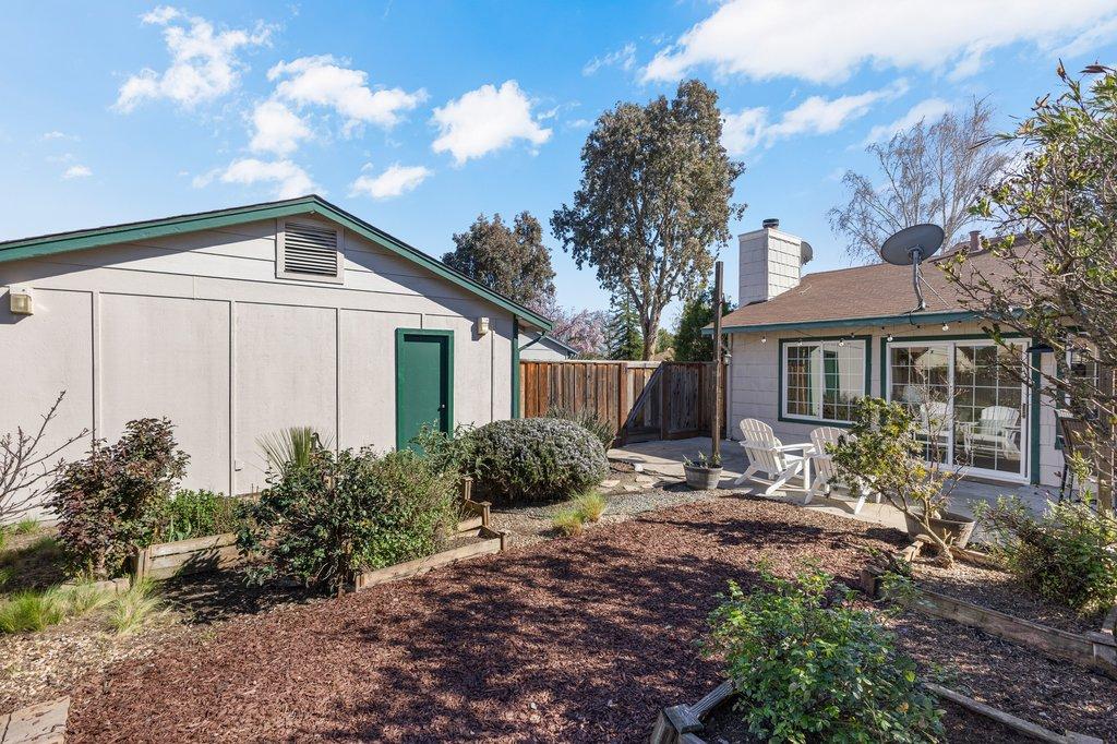 The spacious yard is perfect for relaxing evenings, weekend gatherings, and enjoying Livermore’s sunny weather. Inside, the kitchen features granite countertops, ample storage, and a functional layout. Soaring ceilings, natural light, and a cozy fireplace create an open, welcoming living area. The primary bedroom connects directly to the bathroom for an ensuite-style feel, and both bedrooms include shutters for privacy.